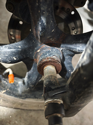 A simple way to check for problems is the manual wheel check. With the motorcycle securely lifted, grab the wheel at opposite sides and gently rock it side to side. Any noticeable play or clicking sensation may indicate excessive internal clearance caused by bearing wear. A healthy wheel bearing should feel solid, with no looseness or uneven movement.